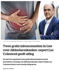 Twee gratis infomomenten in Lier over dikkedarmkanker: expert Luc Colemont geeft uitleg – Dr. Colemont (HLN)