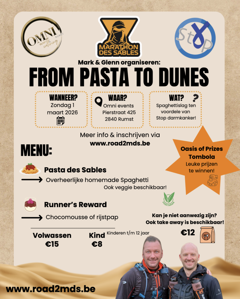 Op zondag 1 maart 2026 organiseren Mark en Glenn het warme benefietevenement From Pasta to Dunes bij Omni Events in Rumst.