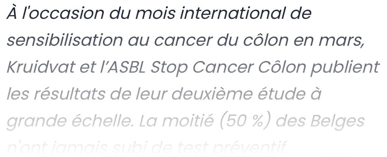 Près de 6 Belges sur 10 souhaitent passer un test de dépistage du cancer du côlon avant l’âge de 50 ans